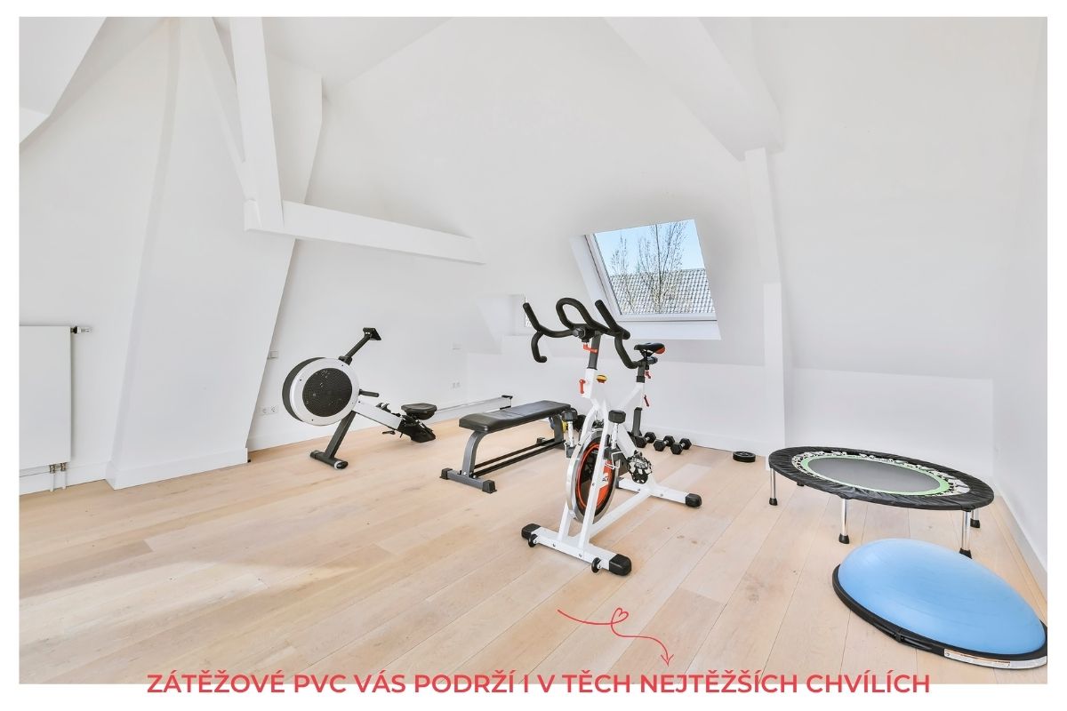 Vhodnou volbou je například zátěžové lino navržené tak, aby odolalo i činkám o vysoké hmotnosti, vibracím rotopedů či běhacích pásů a častým přesunům laviček. Díky své robustní struktuře tlumí kročejový hluk a minimalizuje odraz energie zpět do konstrukce podlahy, takže cvičení probíhá tišeji a komfortněji. Povrch linolea je navíc voděodolný, snadno se zametá a vytírá a dlouhodobě si udržuje svůj vzhled i funkčnost. Pokud cvičíte pravidelně, oceníte i jeho vysokou odolnost vůči potu, oděru a mechanickému zatížení.
